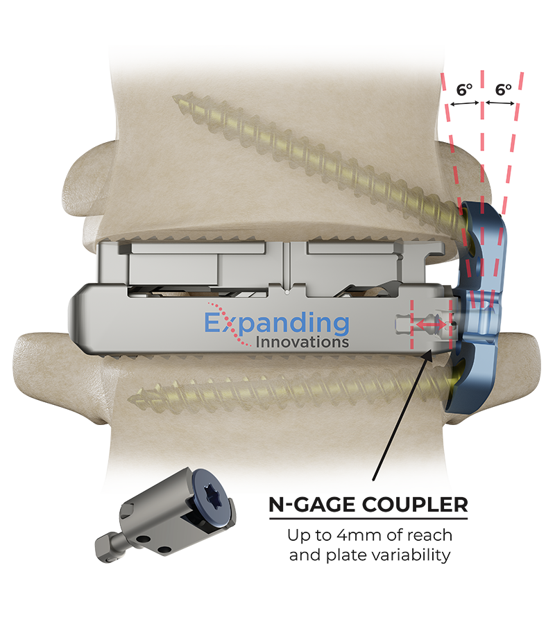 Experience one of the industry’s only modular plate systems designed for use with expandable cages. The optional N-GAGE™ Coupler seamlessly connects cage to play using a secure, polyaxial connection.